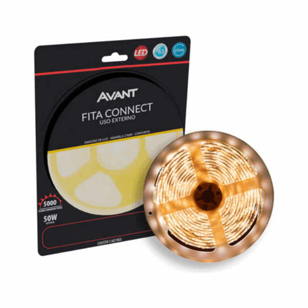 FITA DE LED 5M 4,8W LUZ AMARELA 3000K AVANT BLISTER IP 20(COM FITA E FONTE)
